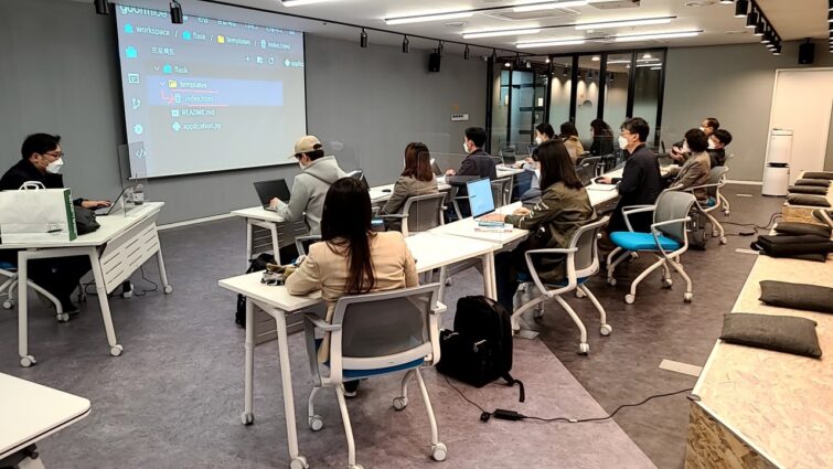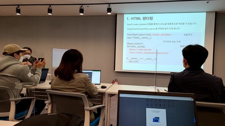 팀별 프로젝트 소개 후 파이썬 기반 Flask 웹프로그래밍을 구름 IDE 서버 환경에서 구축하는 과정을 진행하고 스터디 모임을 마쳤습니다.