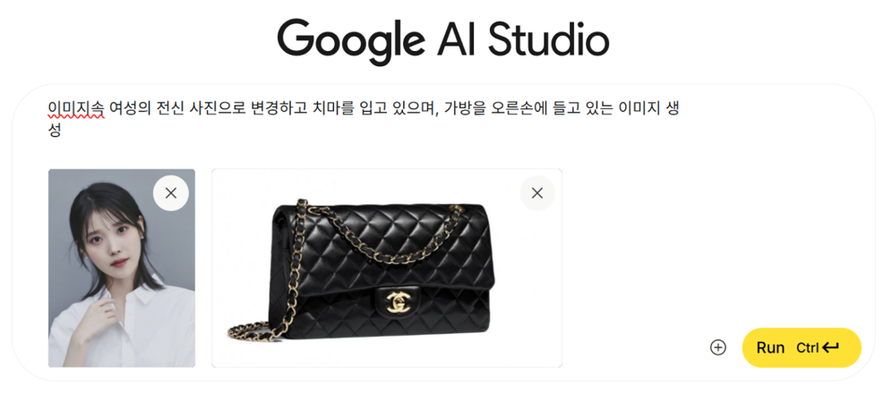 아이유님 사진과 샤넬 가방을 나노 바나나로 합쳐 봤습니다.